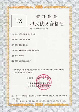 LDP电动单梁型式试验合格证